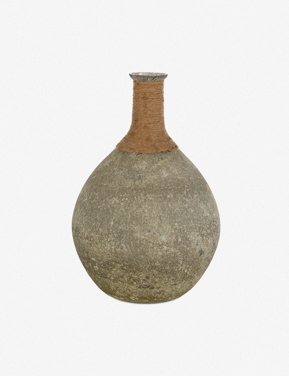 This vase proves that glass doesn’t always have to be pristine to be beautiful. The distressed finish and wrapped jute detailing offer a timeless look with a nod to well-traveled style.