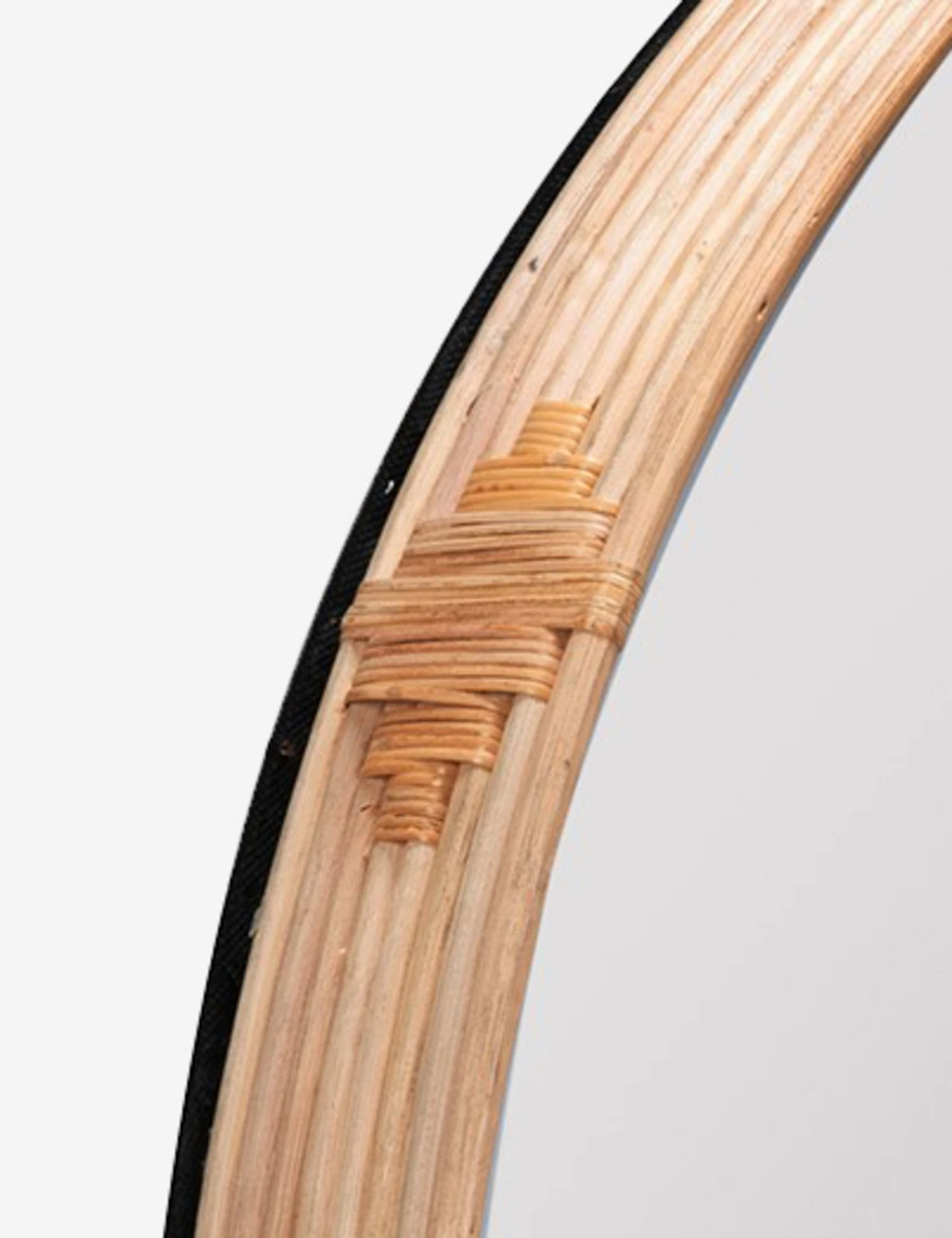 This round mirror may appear simple from a distance, but get closer and you’ll see the small geometric details woven into the rattan frame. We love the subtle Southwestern influence of this wall-mounted mirror!