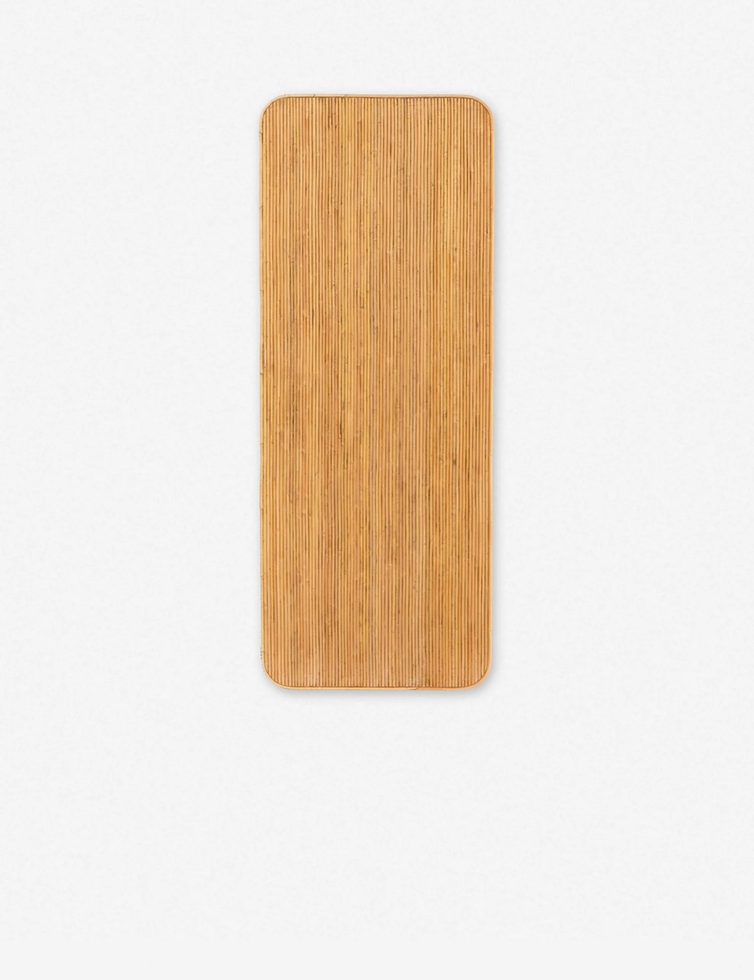 Taking a page from ’70s Italian villas, this sturdy desk features vertical rattan caning for a high-texture finish. Complete with a removable cream leather pad, it provides a smooth, stylish workspace for any transitional office.