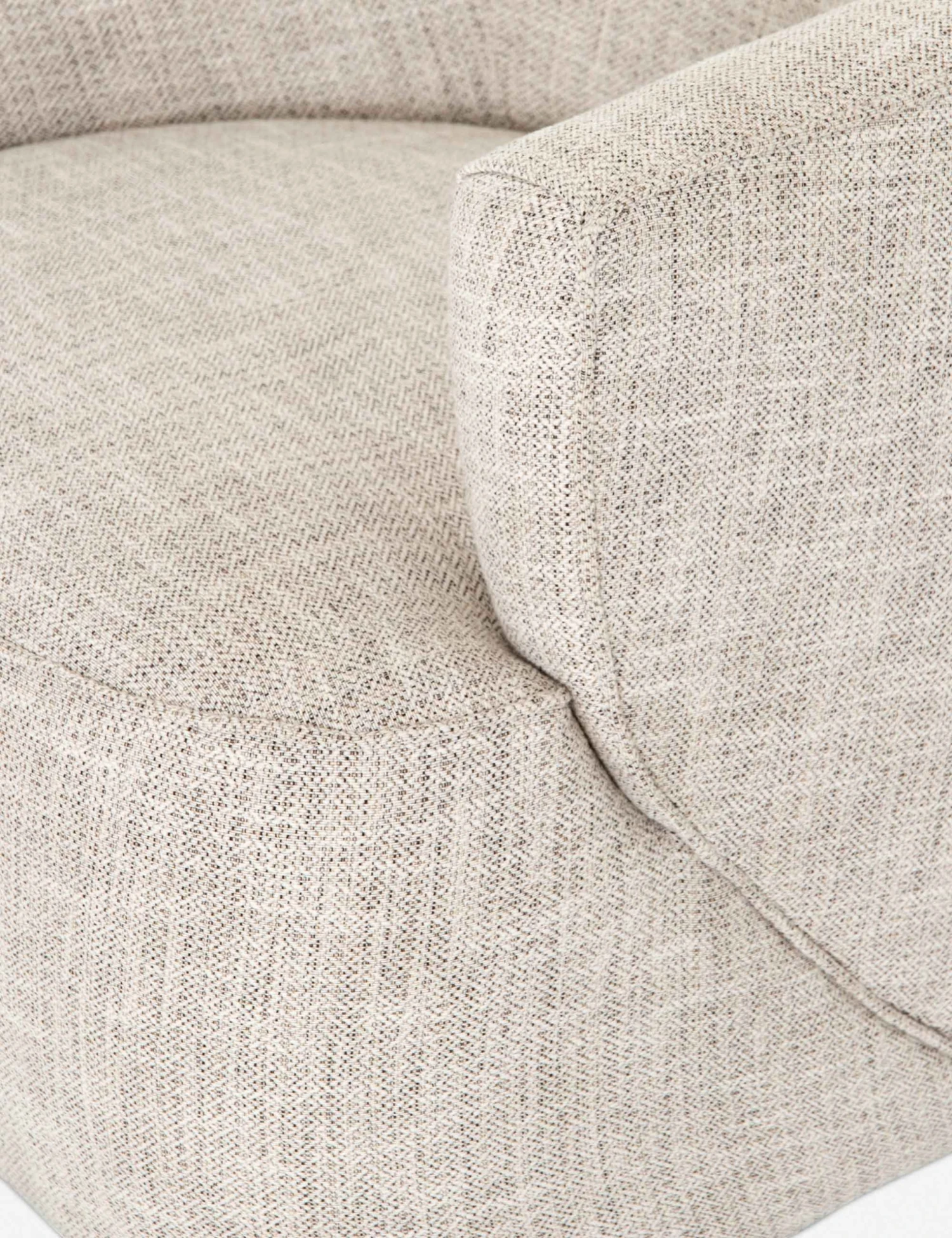 An inspired swivel chair is a fun addition to your living room. This piece features a low back and modern design, upholstered in a marled light-grey fabric for added texture.