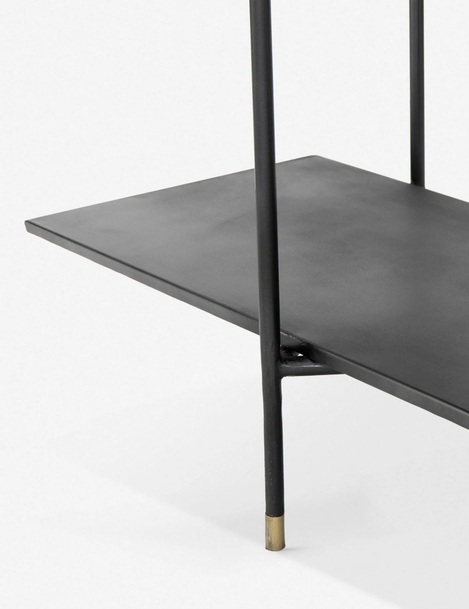 Sleek, industrial style defines this bookcase, with an open design and slim, triangular iron supports with gold-tipped feet.