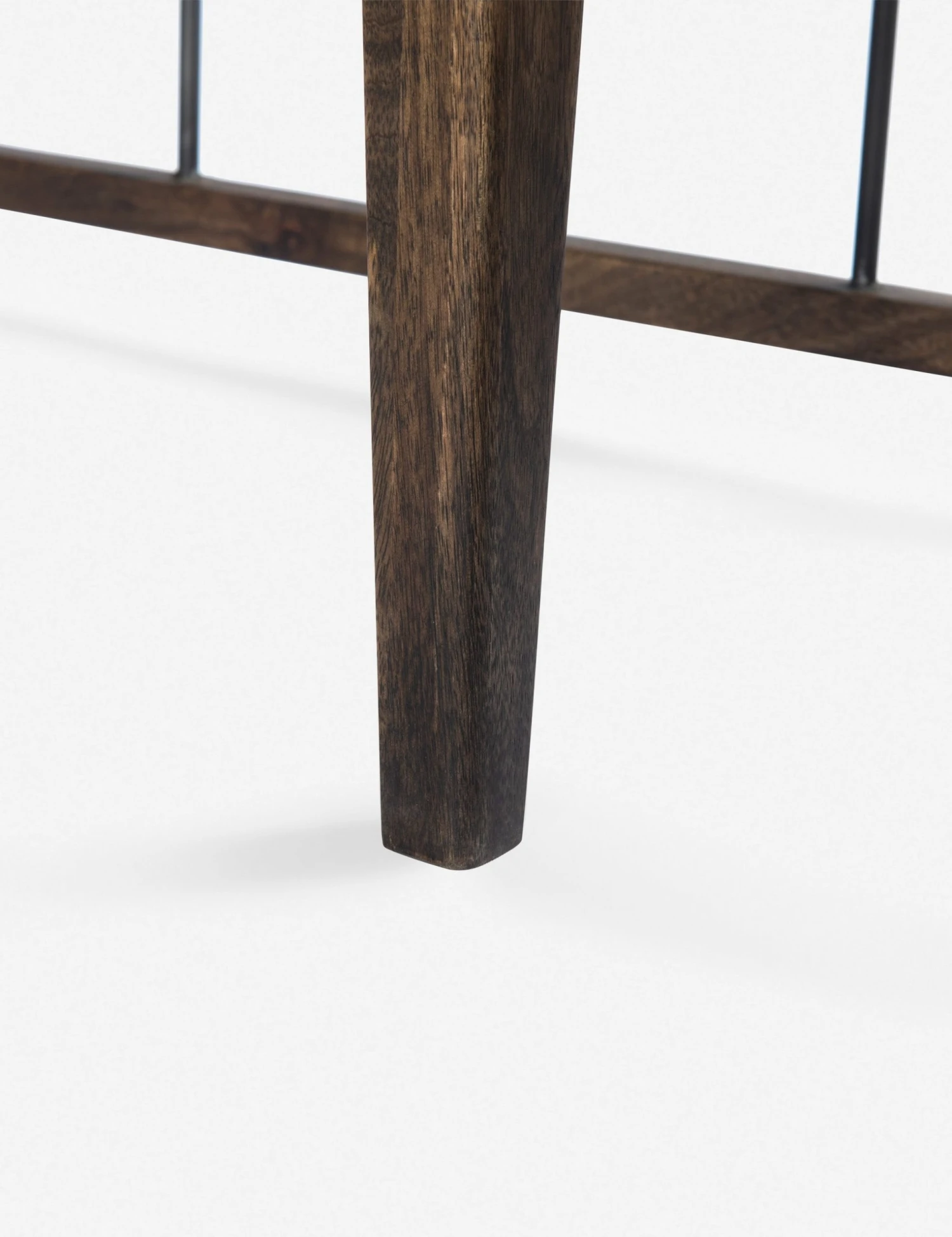 This wooden bench brings a vintage-inspired appeal to your home. Slim spindles, a low back, and tapered legs put a modern twist on this seating piece. We love it styled in entryways, hallways, or even dining rooms.
