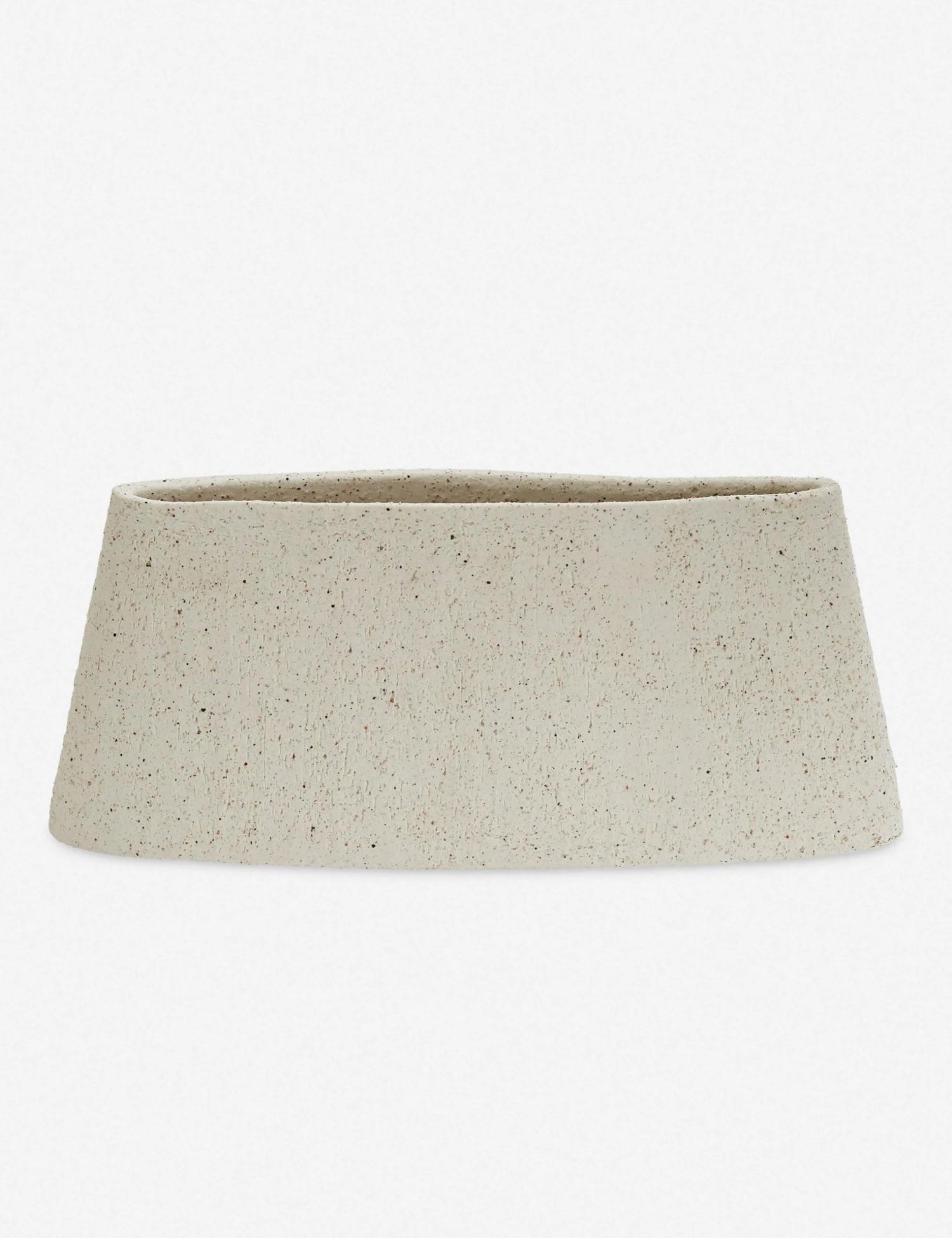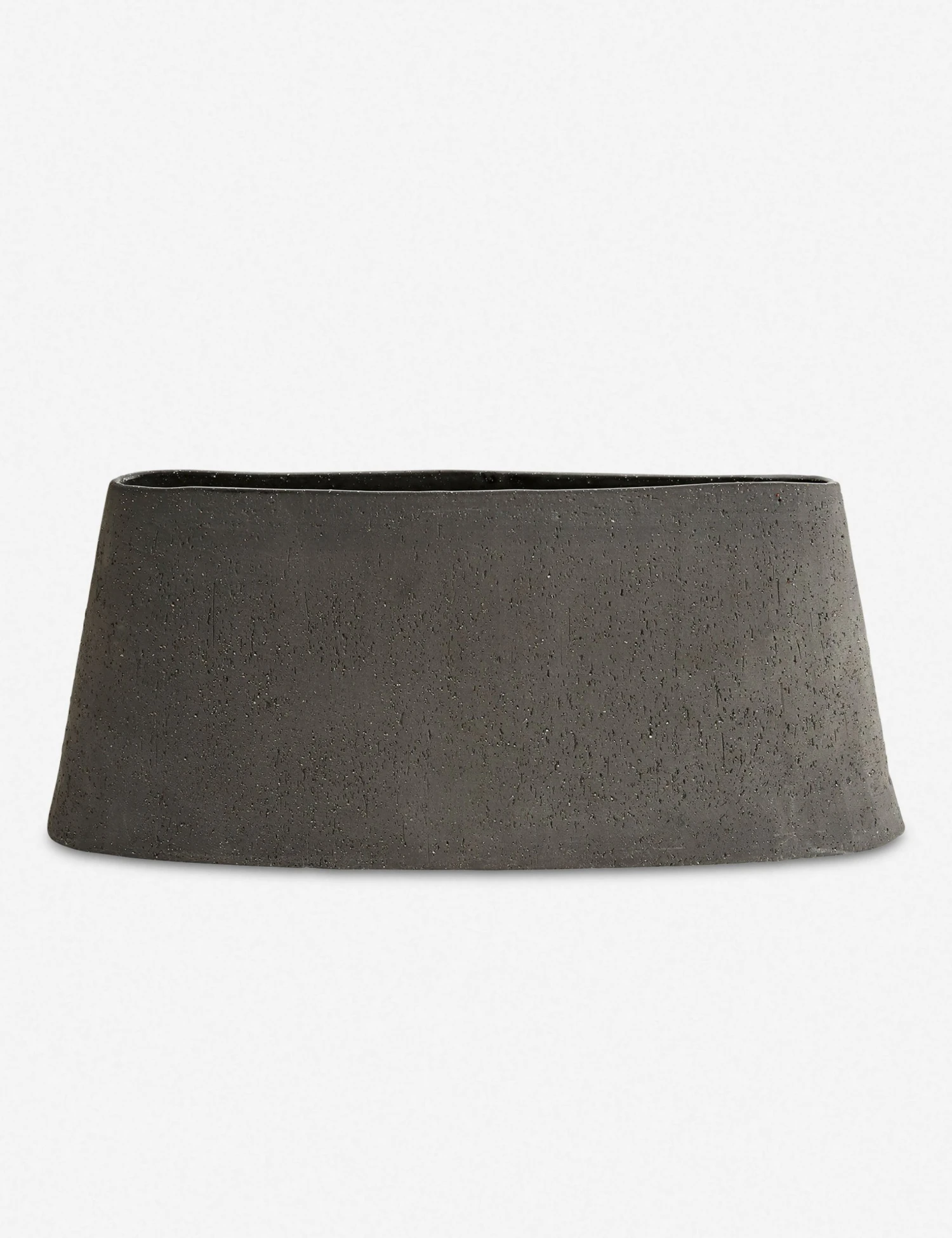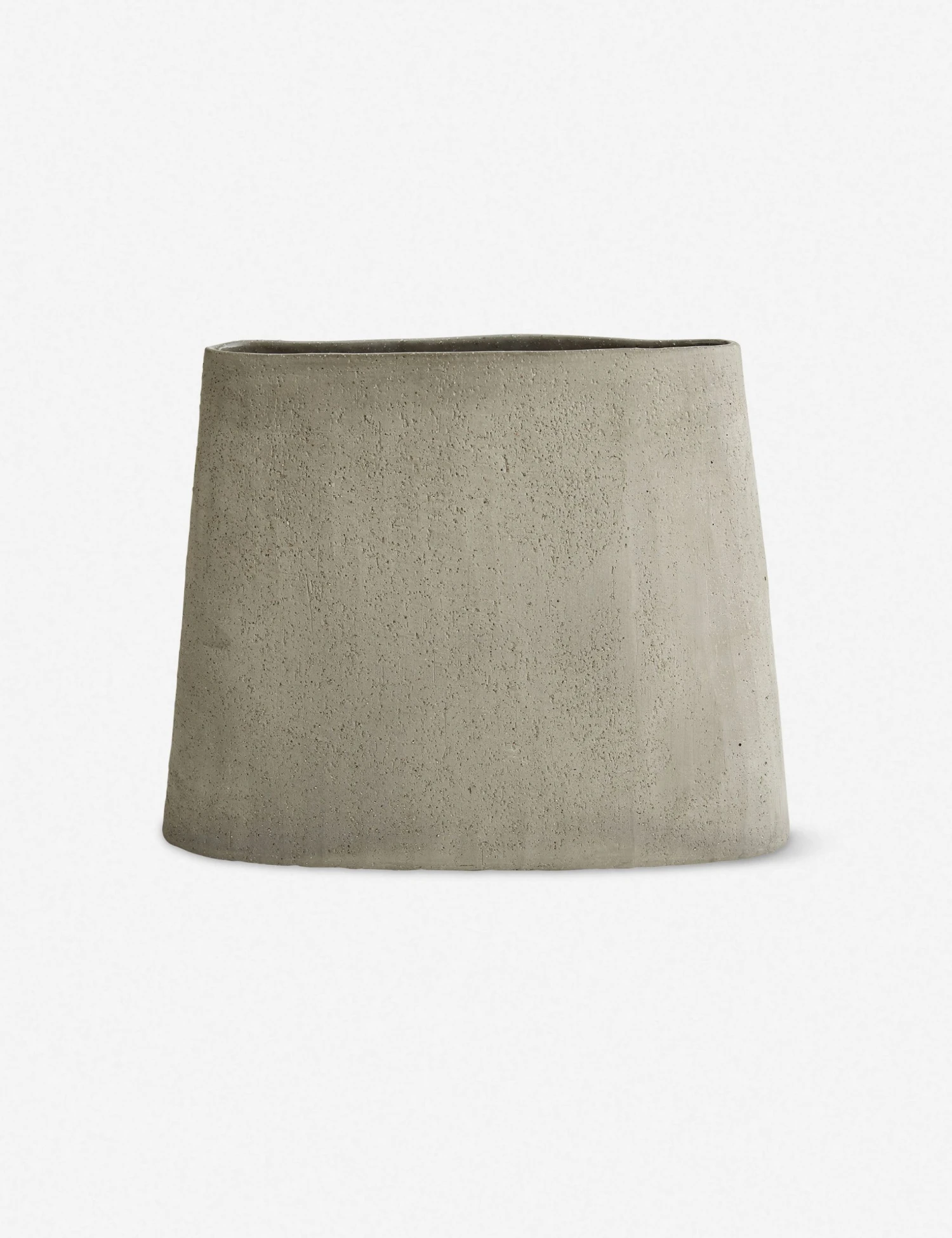 Sculptural lines form the slender, tapered silhouettes of these vases. Artisans incorporate sand into the ceramic to complement the subtly organic shape with a coarse natural texture. In a scaled set, these vases will bring visual impact to a console table or bookcase.