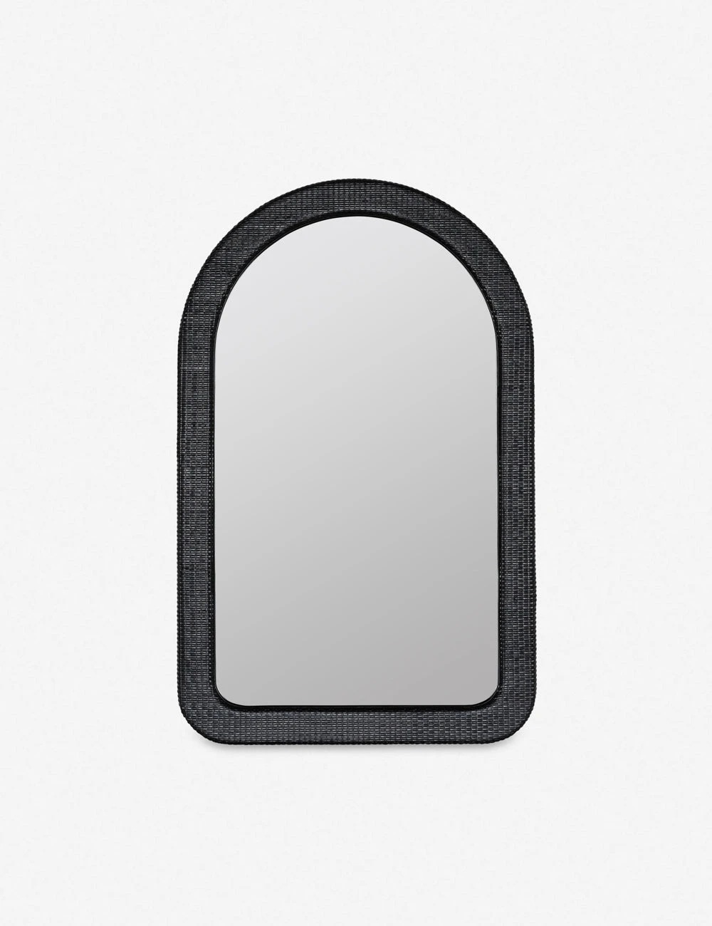 A black woven rattan frame creates textural intrigue around this arched wall mirror. We love the pairing of a natural material with a bold finish for a signature addition to a transitional space. Hang this mirror in your entryway or a small-space lounge to open up the room with an architectural edge.