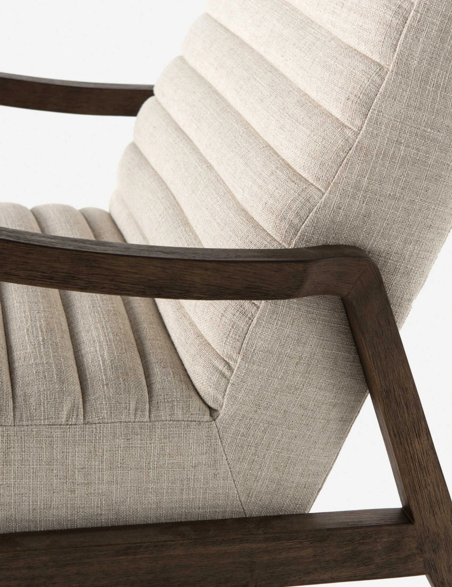 A truly contemporary addition, the Kimber Chair was made for seriously stylish lounging. Sloping arms and angled legs frame a plush seat, designed with horizontal channeling.