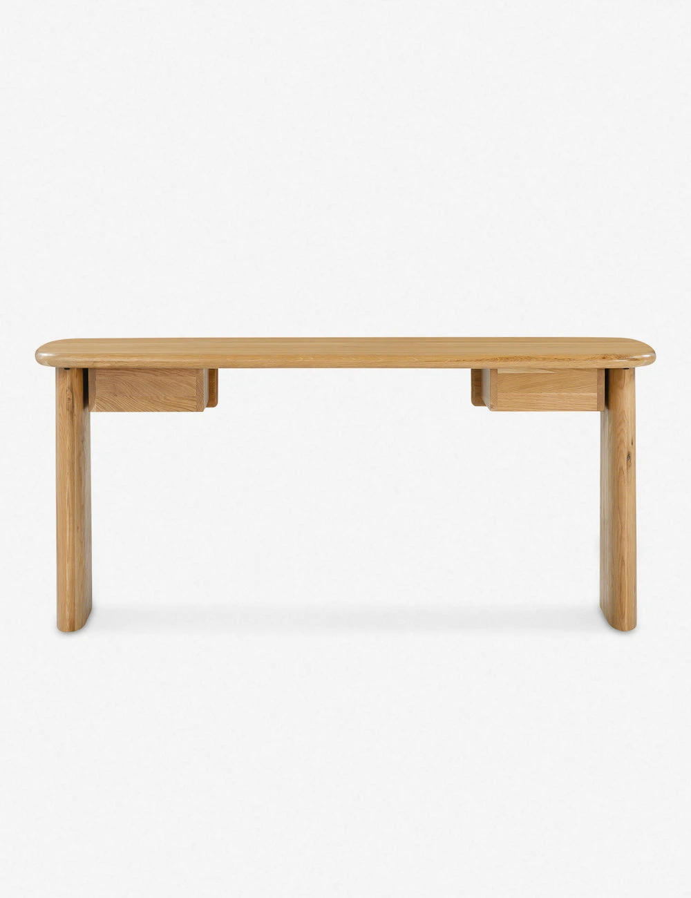 This FSC-certified oak desk offers a soft, sculptural profile which is perfect for a minimalist workspace aesthetic. Complement the woodgrain texture, wire-brushed finish, and rounded edges with a clean-lined desk chair for the ultimate modern statement in your home office or study.