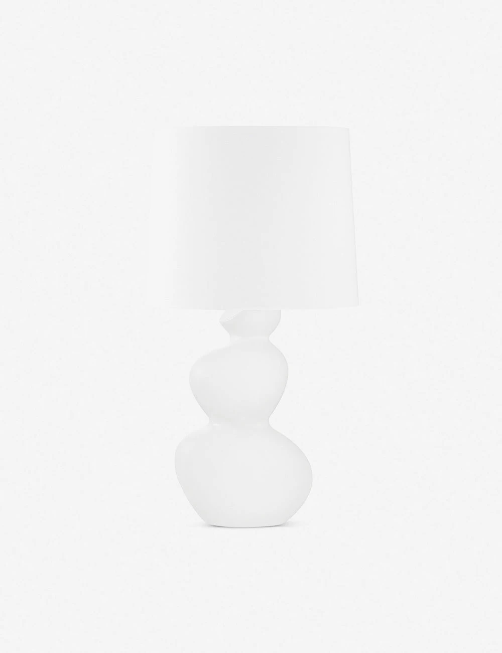 Bold, undulating lines give this table lamp its fluid silhouette. The crisp, Belgian linen drum shade adds a refining touch casting ambient light out and down along the sculptural base. We love this modern table lamp for adding polish and layered lighting to a living space or for setting an art-forward tone on your entryway table.