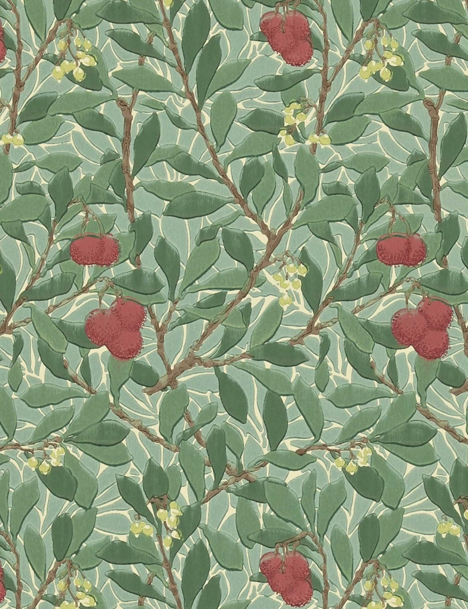 Lulu And Georgia Morris & Co. Arbutus Wallpaper, Dark Green/Red Swatch