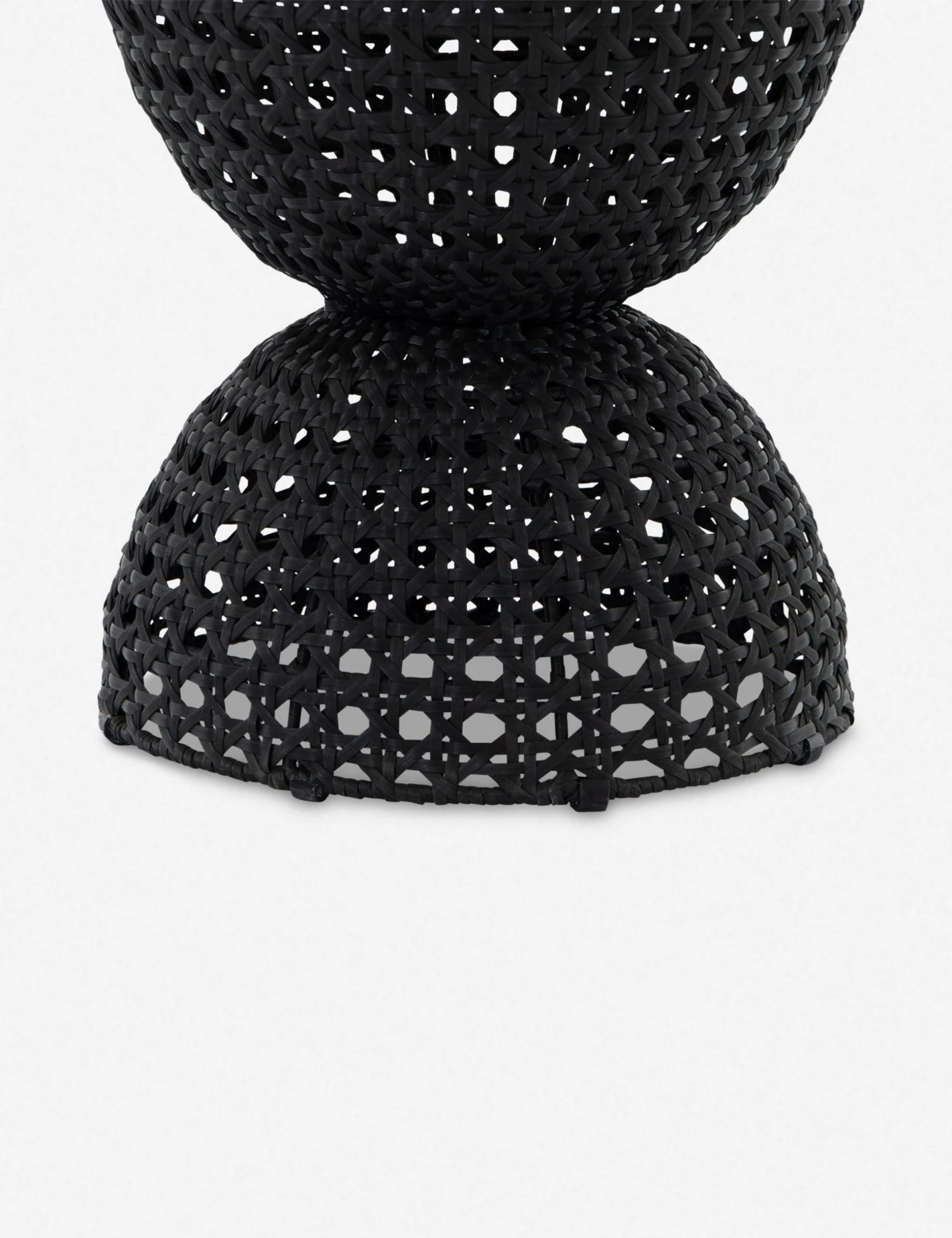 Timeless shape meets modern design in this airy drum-shaped side table. Whether finishing your look or in search of new inspiration, this end table offers a tone-setting accent with versatile potential. Its hourglass silhouette features an all-weather synthetic weave for a texture-forward appeal you can style from a studio to a patio.