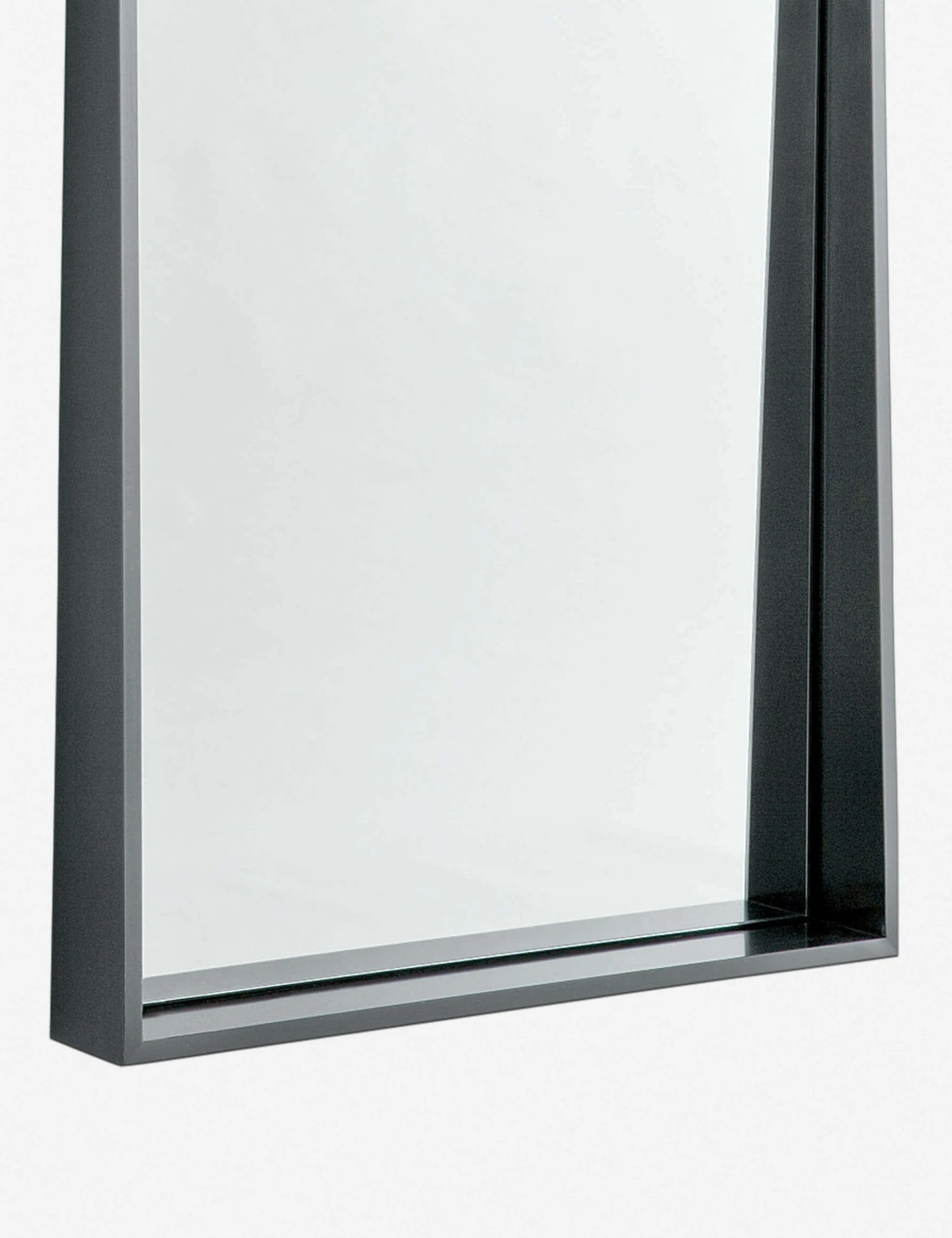 Recessed in a frame that tapers in at the top, this modern mirror adds interest and dimension to bare walls. The sleek, simple design looks great in minimalist spaces.