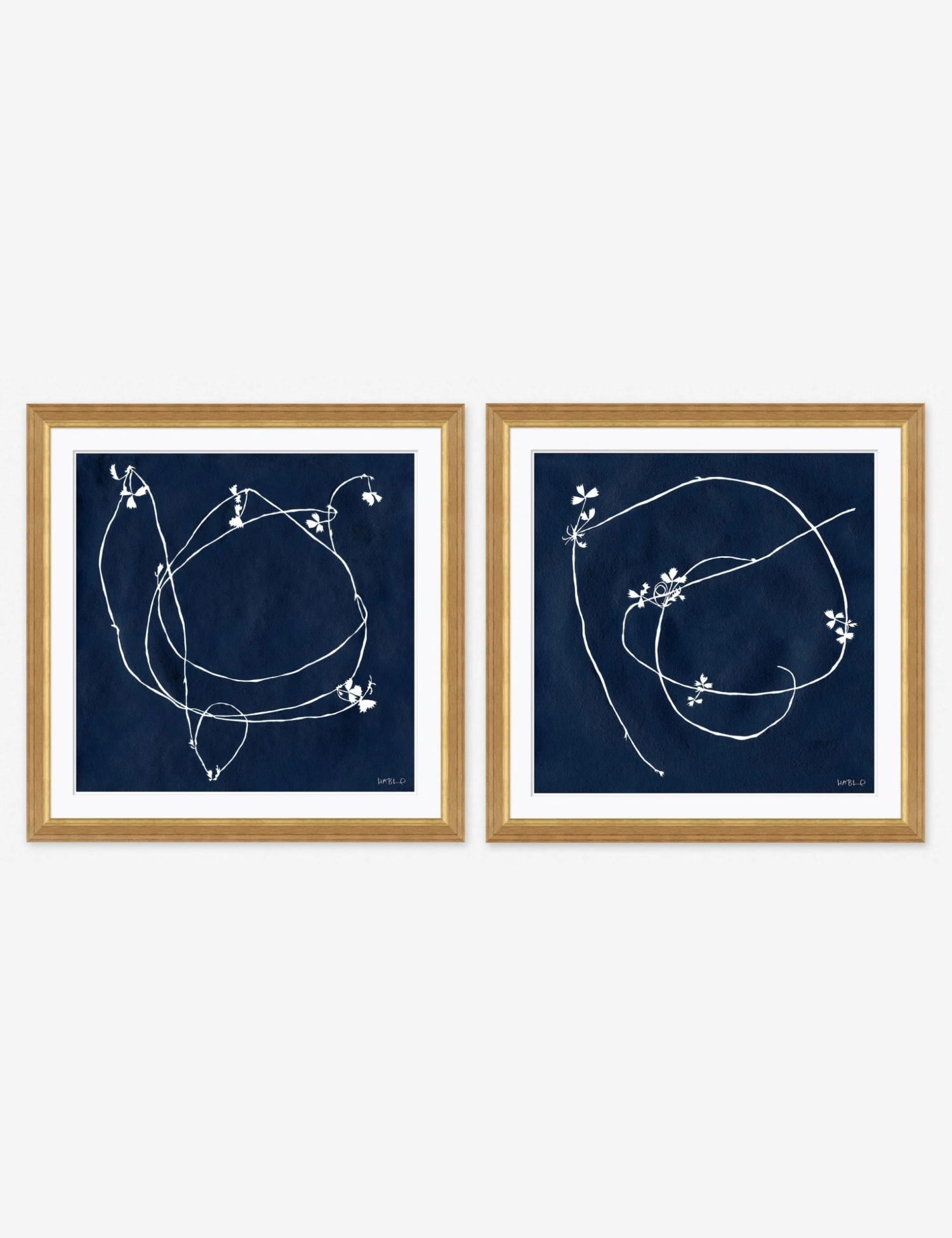 This wall art print set, depicting strawberry fruit vines, is the perfect finishing touch for any room in your home. The delicate white lines and deep blue ground bring a minimalist yet feminine feel to your wall decor. Hang together for a diptych inspired look, or place them within a gallery art wall.
