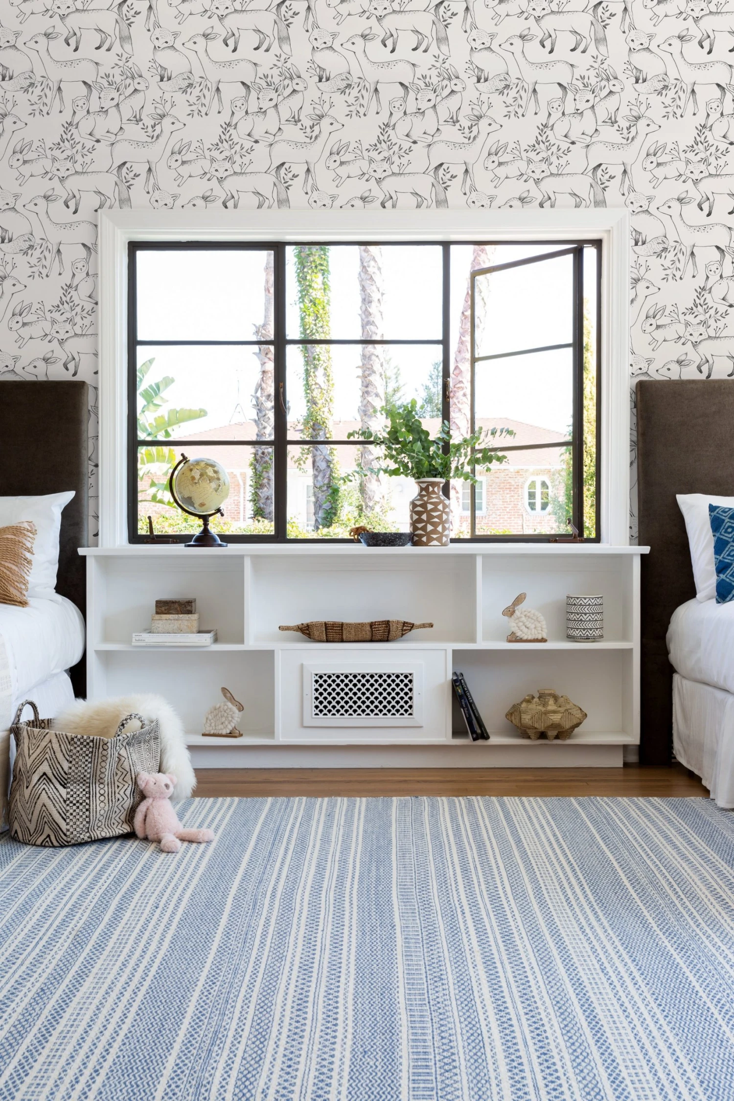 An L+G exclusive, the Rylee + Cru wallpaper collection features minimalist designs inspired by travel, nature and vintage illustrations. An enchanted forest scene in a simple black and white sketch makes our Woodland Wallpaper a modern and whimsical addition to a nursery or children’s play area.